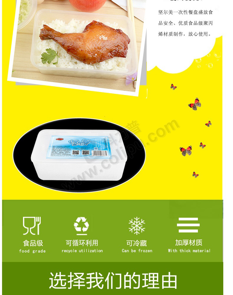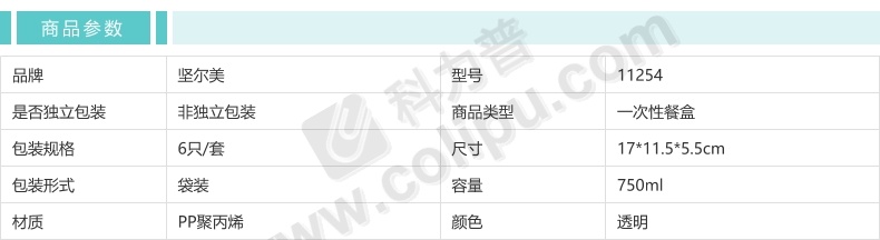 坚尔美 JEM PP一次性带盖一格方形餐盒 11254 750ml 17cm*11.5cm*5.5cm (透明) 6只/套 24套/箱