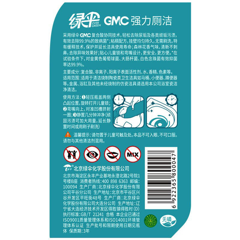 绿伞 EverGreen 强力厕洁 洁厕剂 800g/瓶 12瓶/箱 (芳香型)(新老包装交替发货)