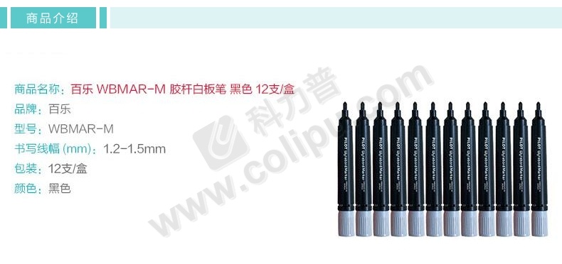 百乐 PILOT 胶杆白板笔 WBMAR-M 单头 M头 (黑色) 12支/盒