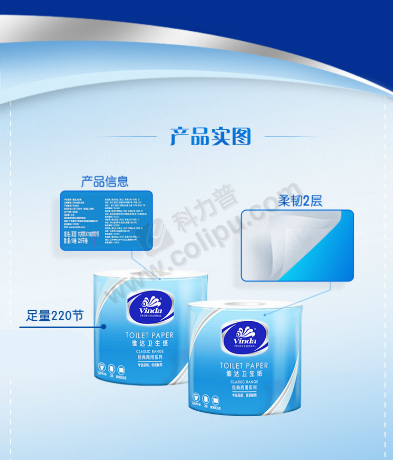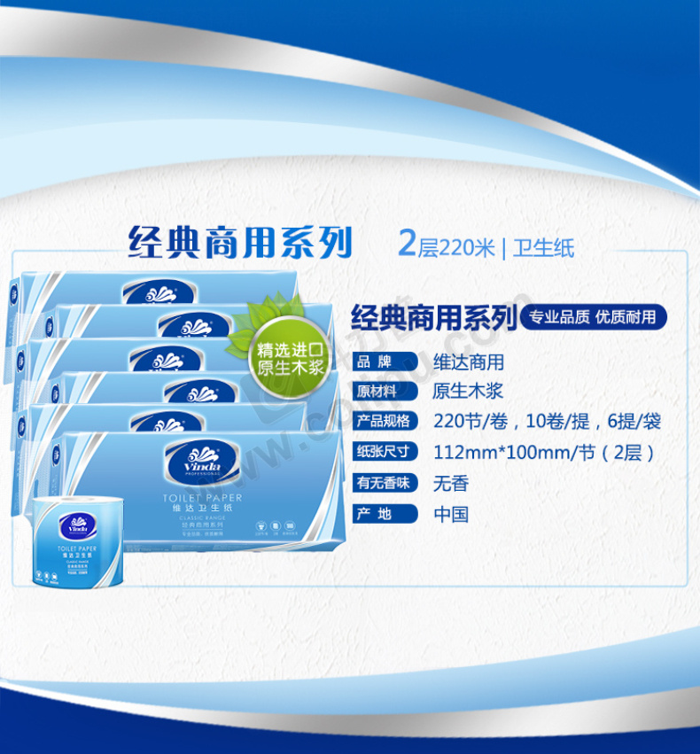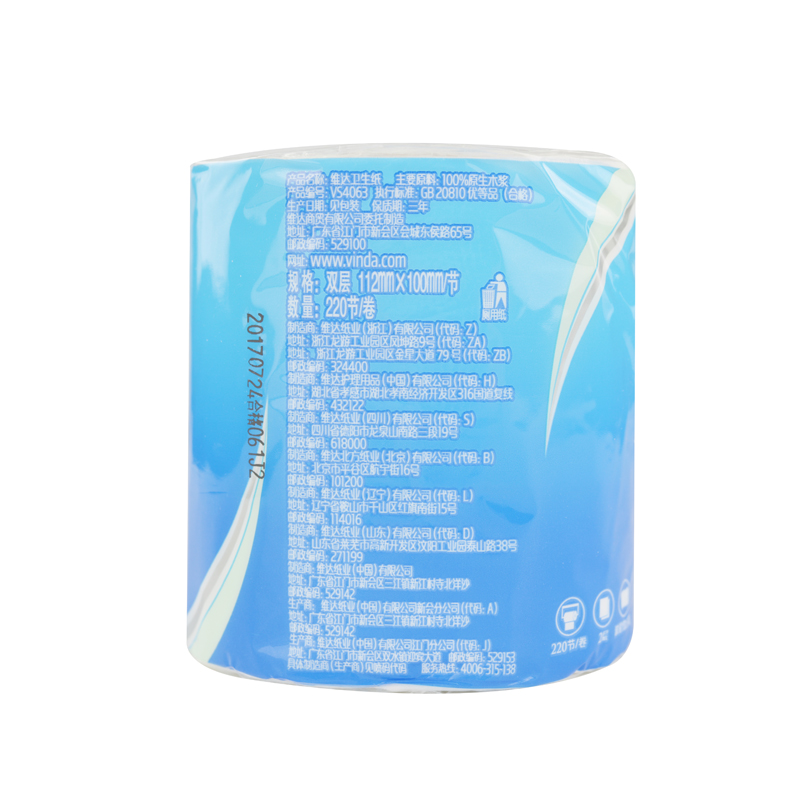 维达 vinda 卷筒卫生纸 V4063/VS4063 双层 220段/卷 10卷/提 6提/箱