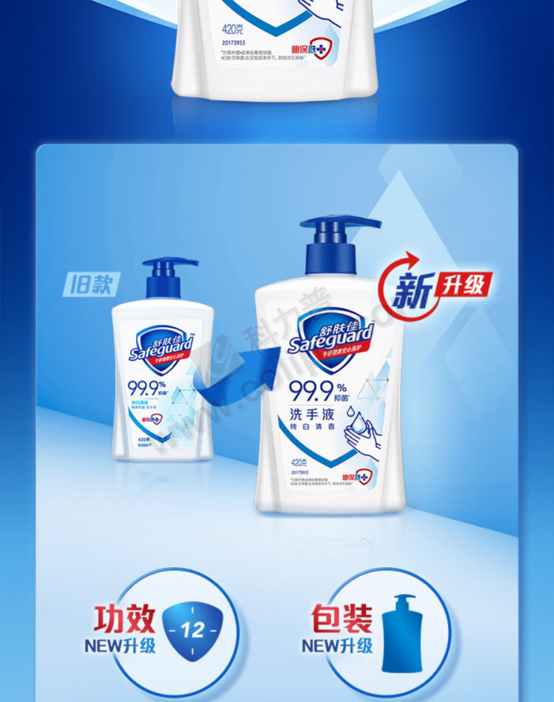 舒肤佳 SAFEGUARD 健康抑菌洗手液 (纯白清香) 450g/瓶 12瓶/箱
