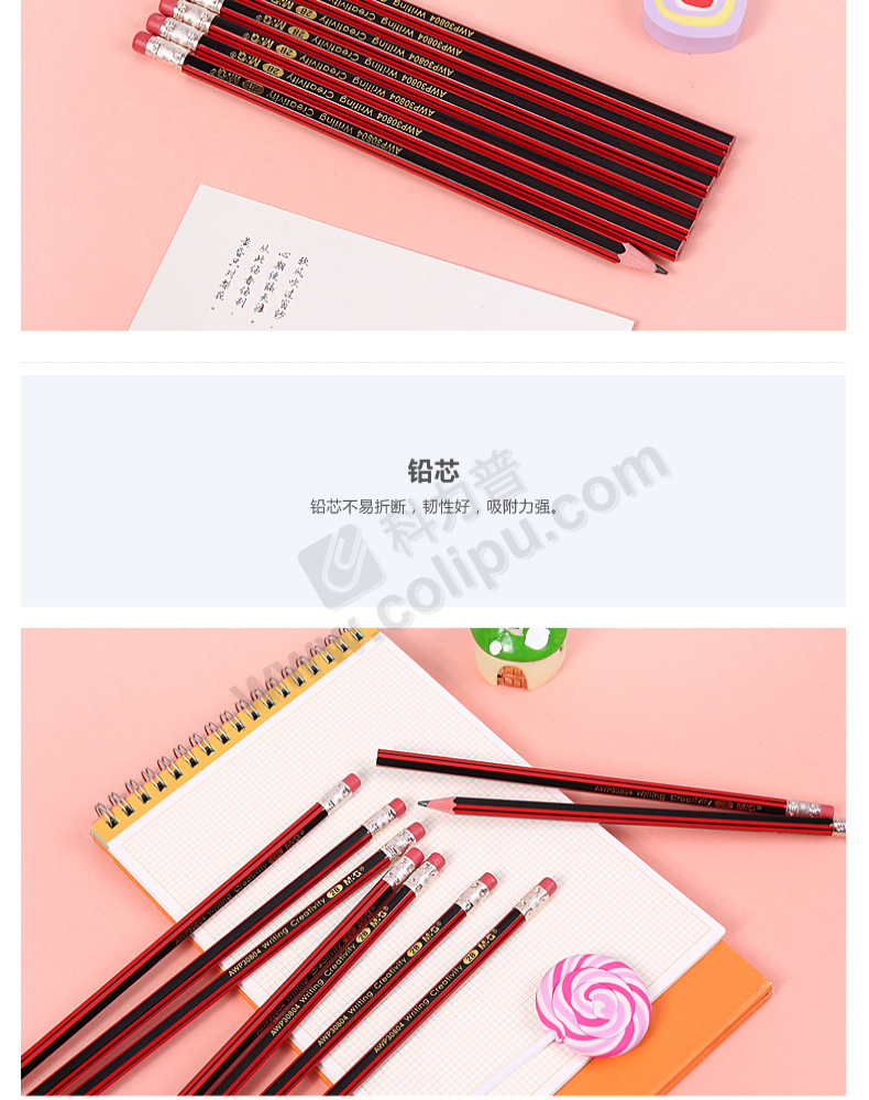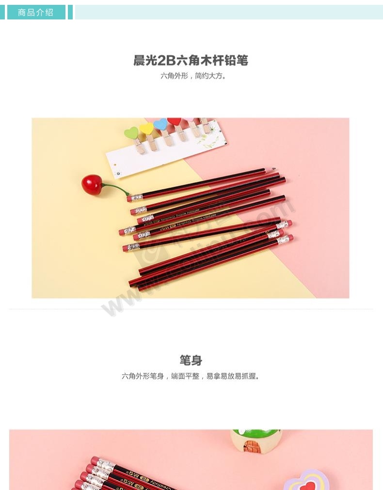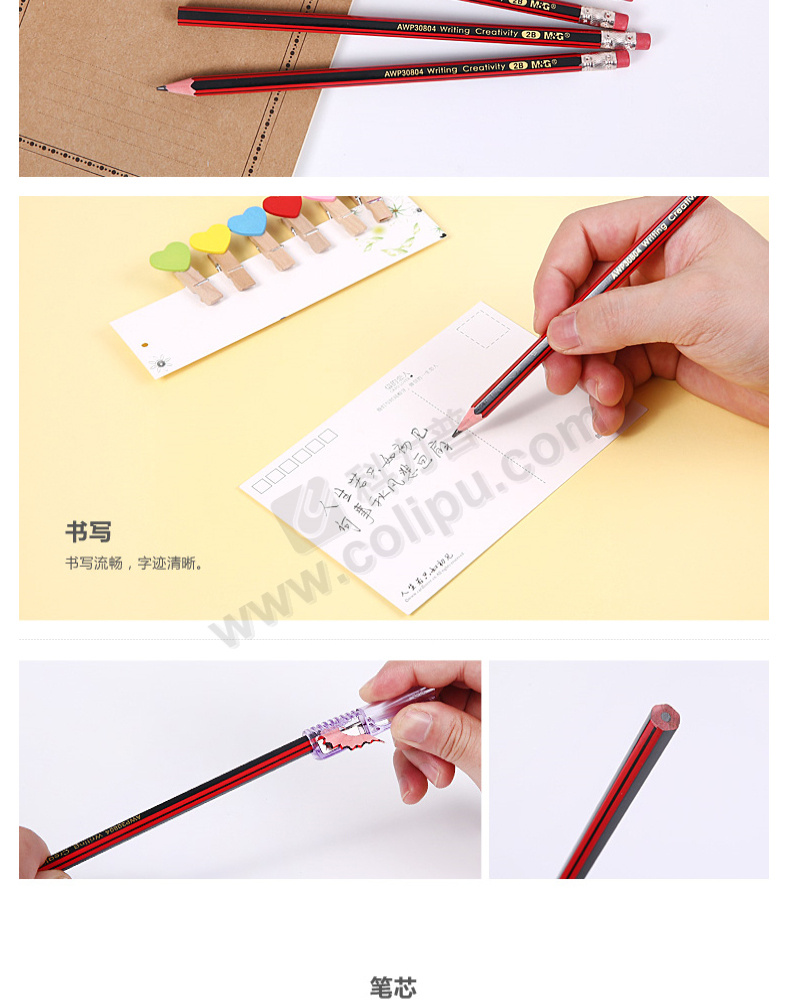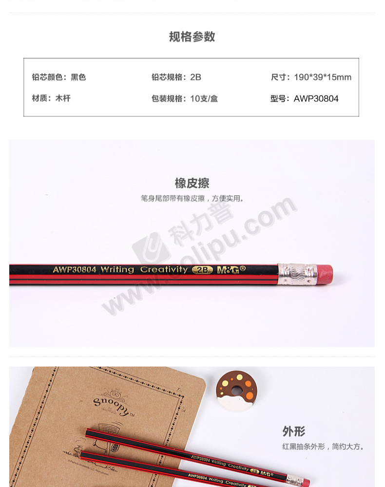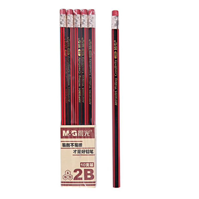 晨光 M&G 带橡皮红黑色木杆2B铅笔 AWP30804 10支/盒