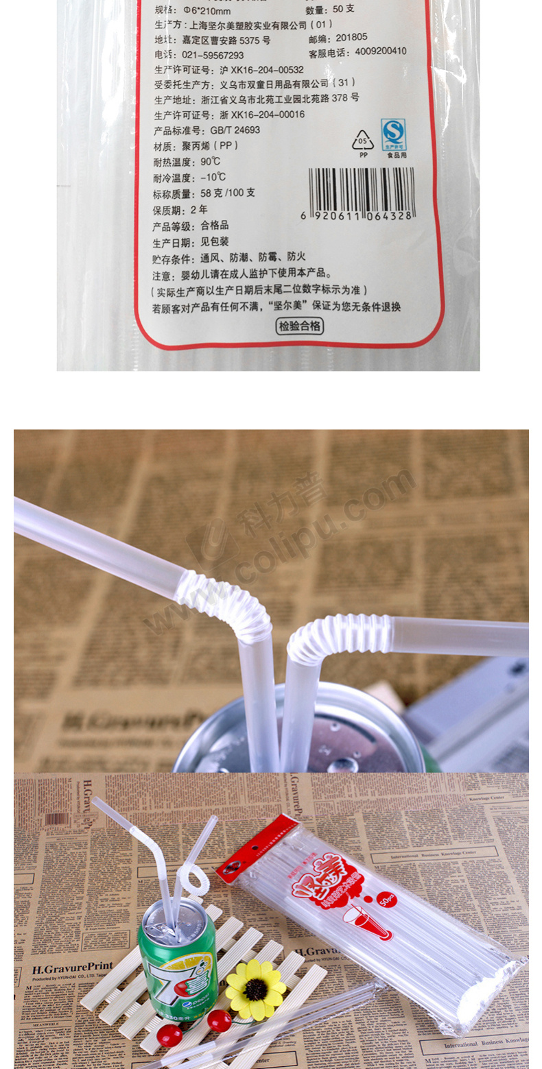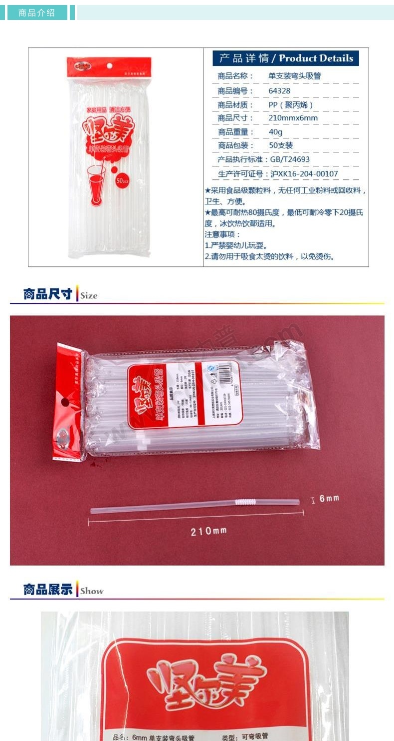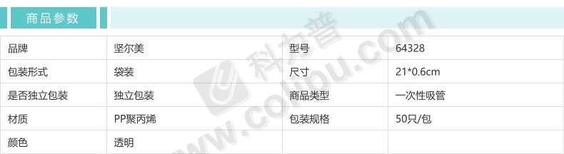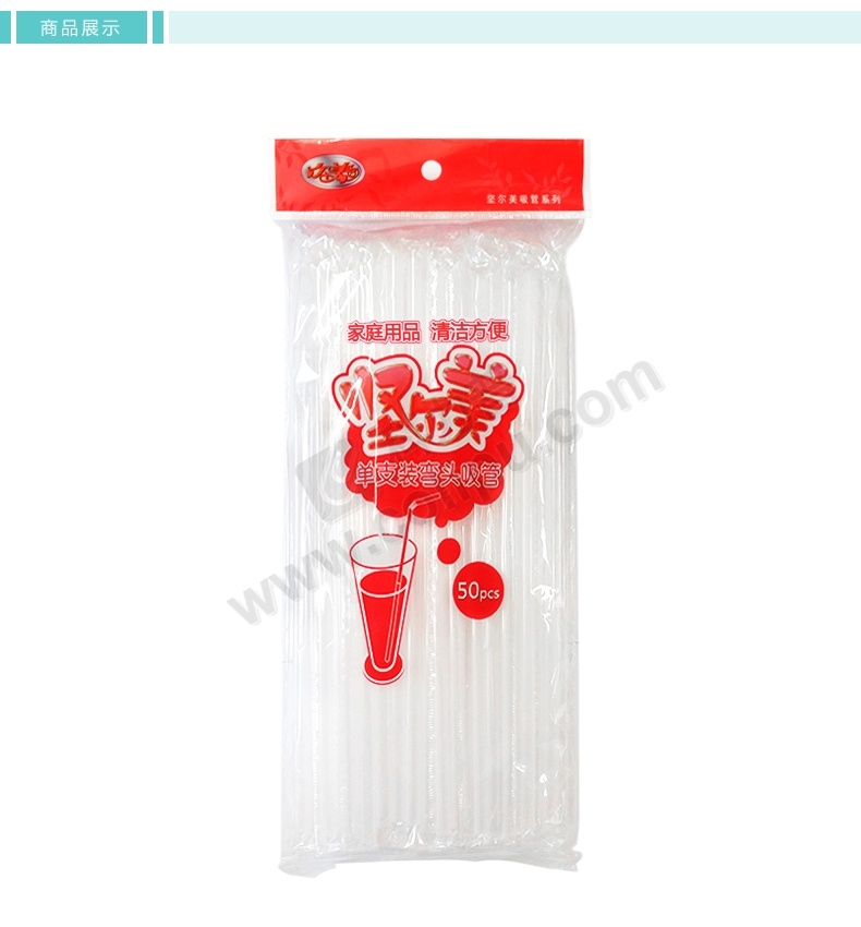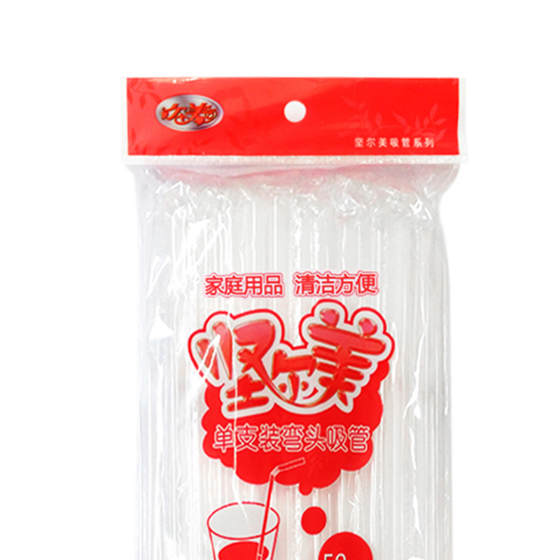 坚尔美 JEM PP一次性弯头吸管 独立包装 64328 21cm*0.6cm (透明) 50只/包 24包/箱
