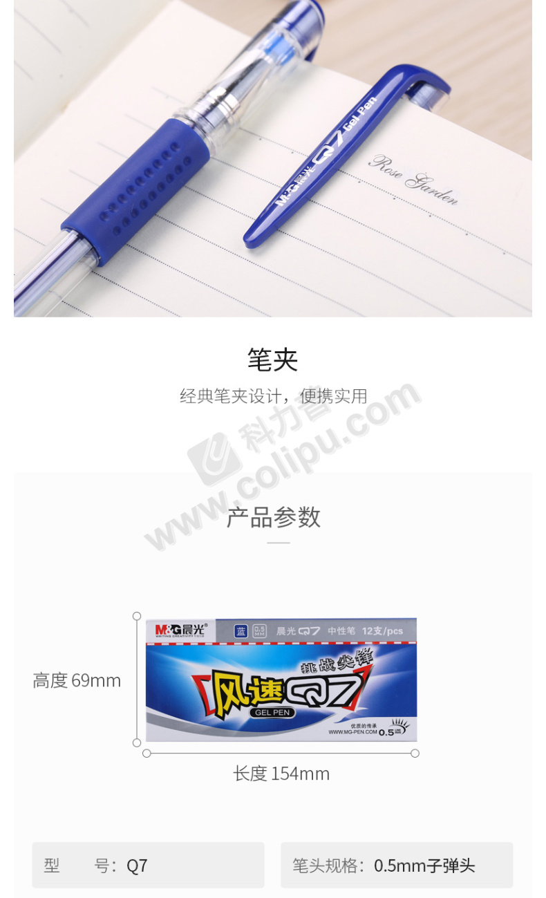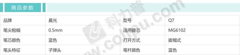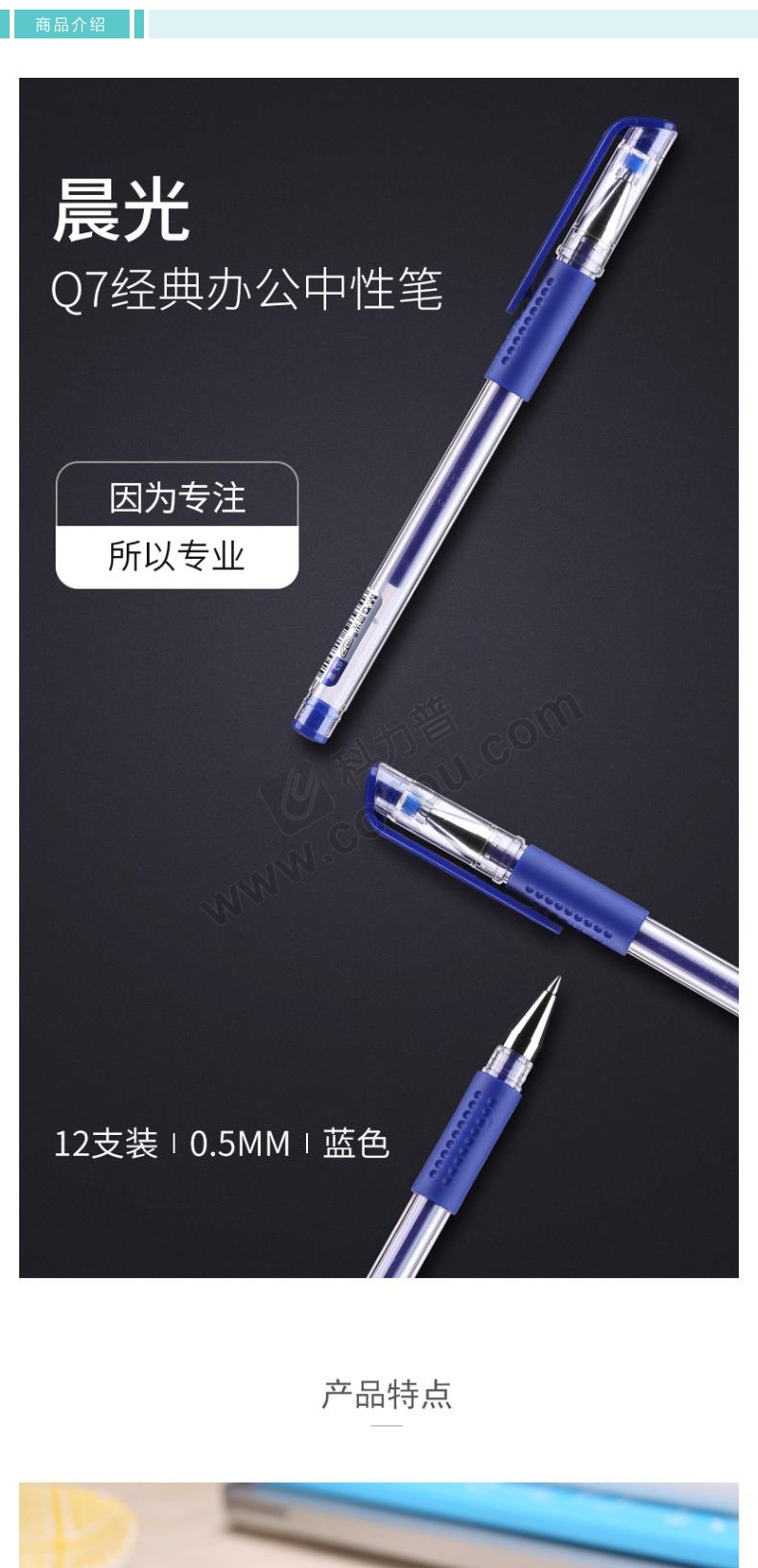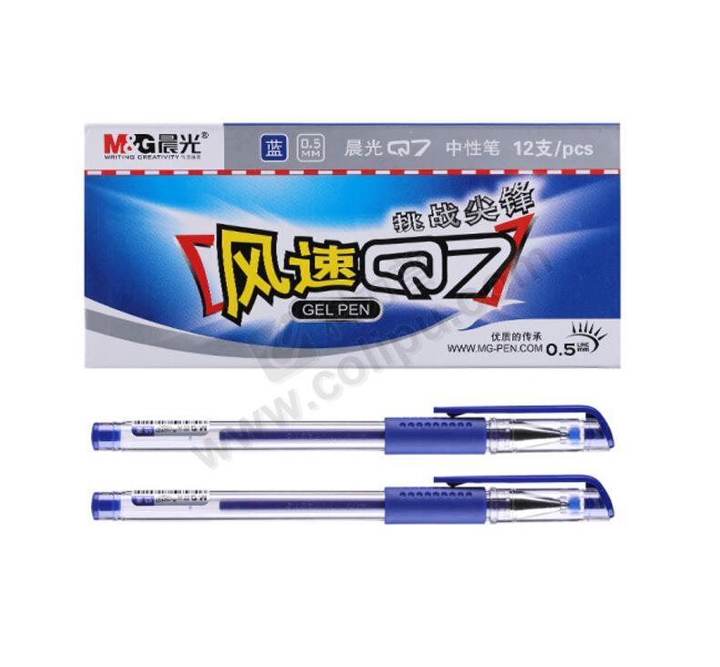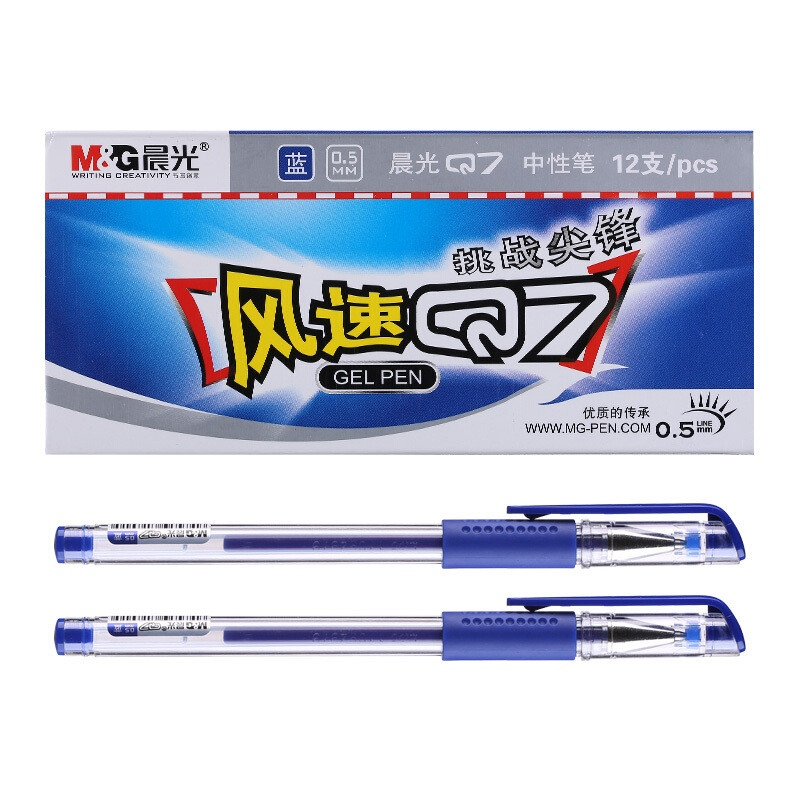晨光 M&G 拔帽中性笔 Q7 0.5mm (蓝色) 12支/盒 (替芯 MG-6102)(大包装)