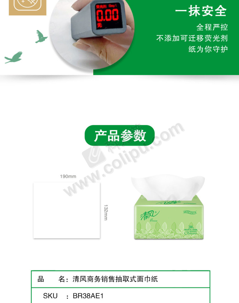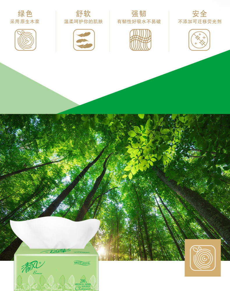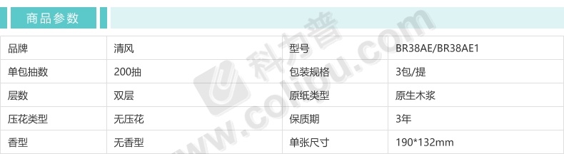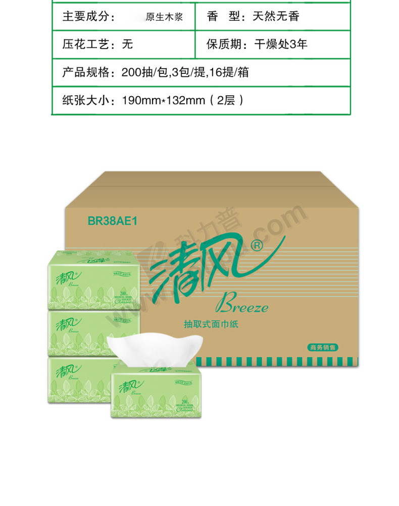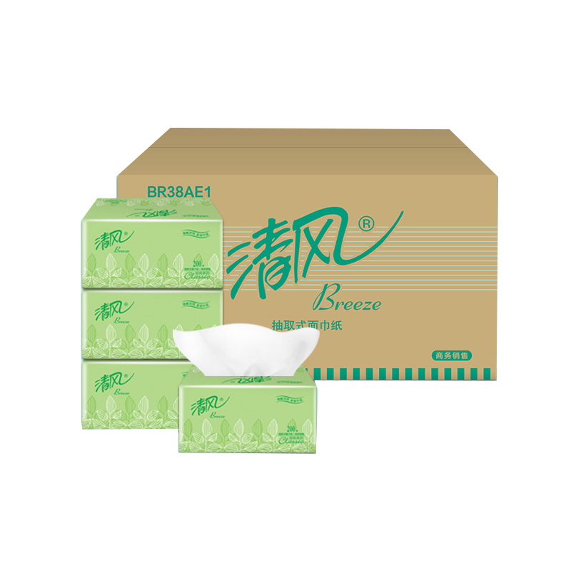 清风 软包抽取式面巾纸 BR38AE/BR38AE1 190*132mm双层 200抽/包 3包/提 16提/箱