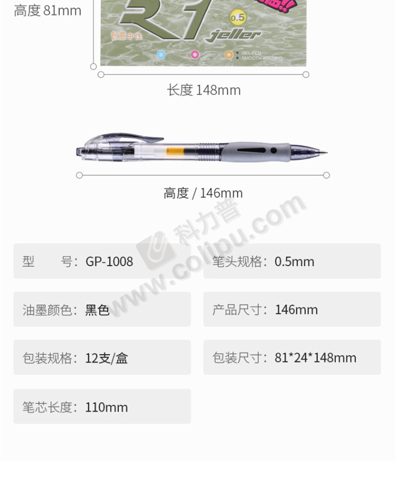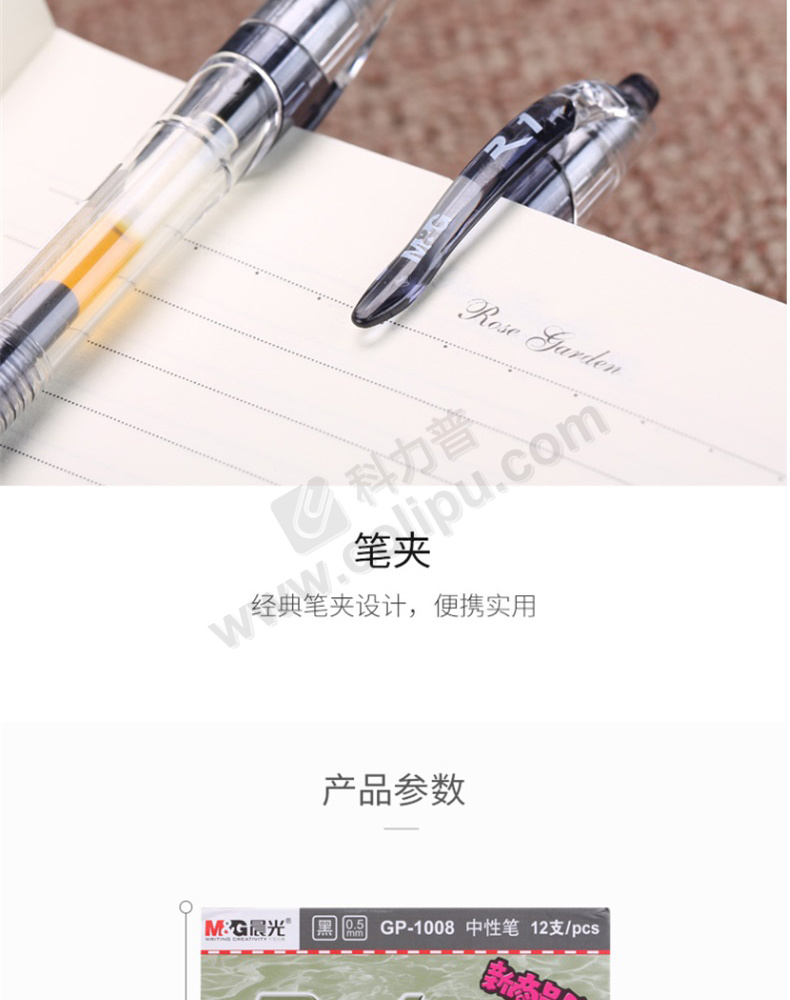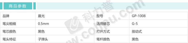 晨光 M&G 按动中性笔 GP-1008 0.5mm (黑色) 12支/盒 (替芯 G-5)塑料