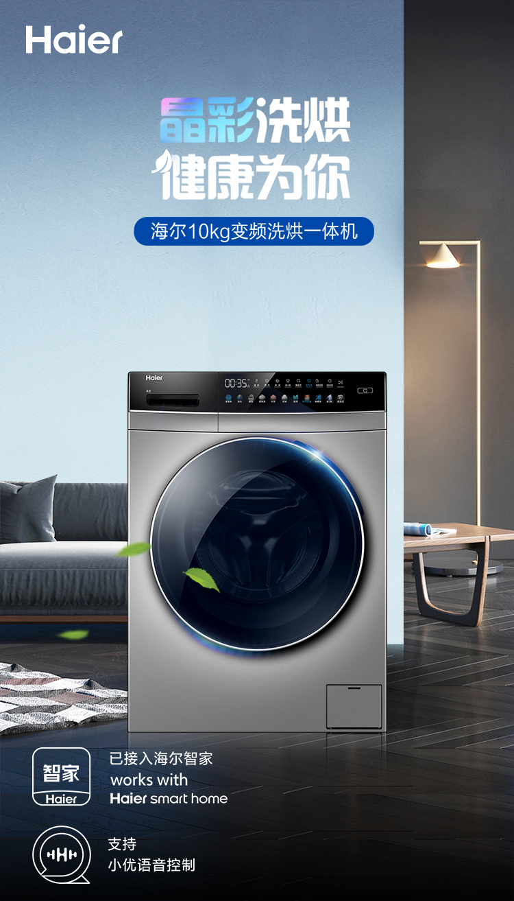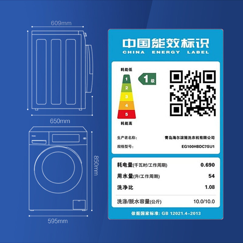海尔(Haier)滚筒洗衣机全自动家电 以旧换新 智能投放 10公斤 彩屏除菌螨洗烘一体 EG100HBDC7SU1