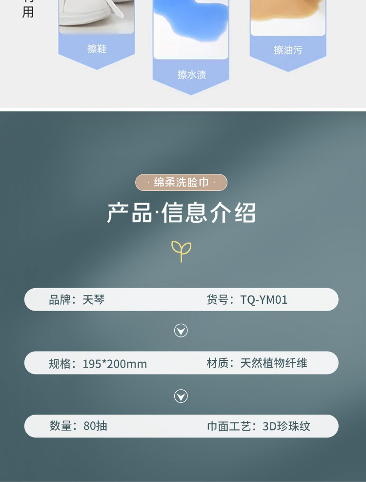 天琴 干湿两用抽取式棉柔巾M1TQ-YM01一次性洗脸巾80抽旅行加厚便携抽取式3D珍珠纹棉柔巾干湿两用化妆棉