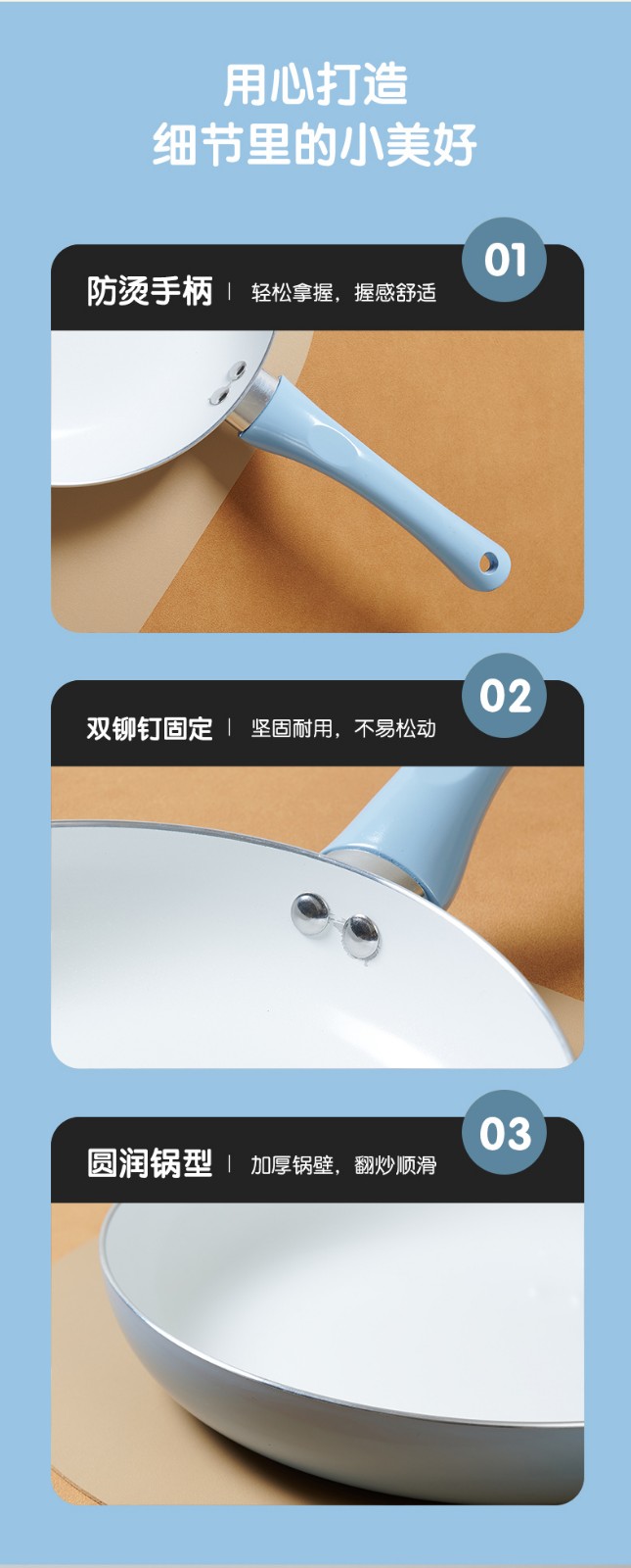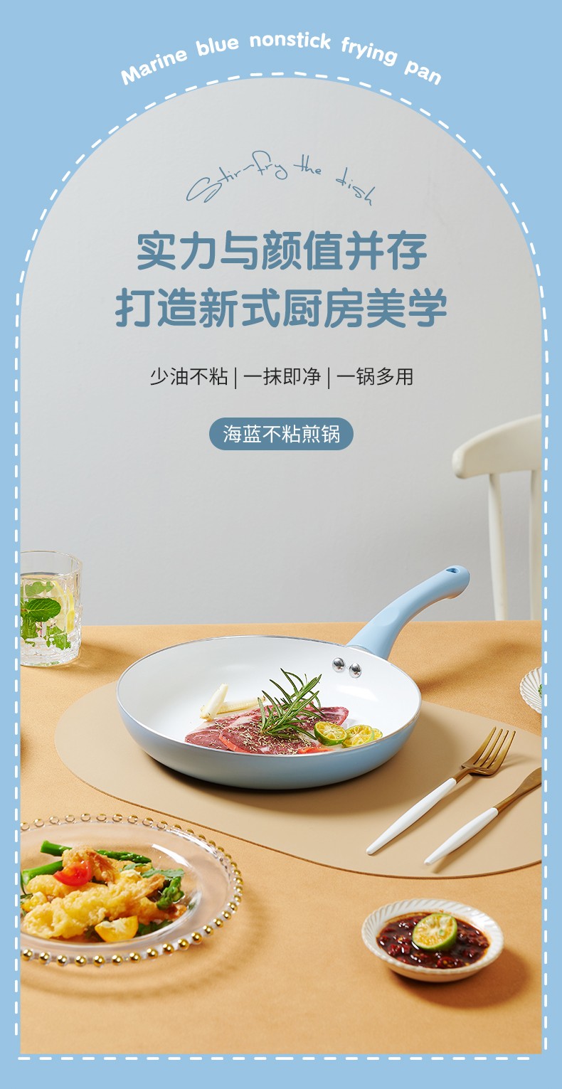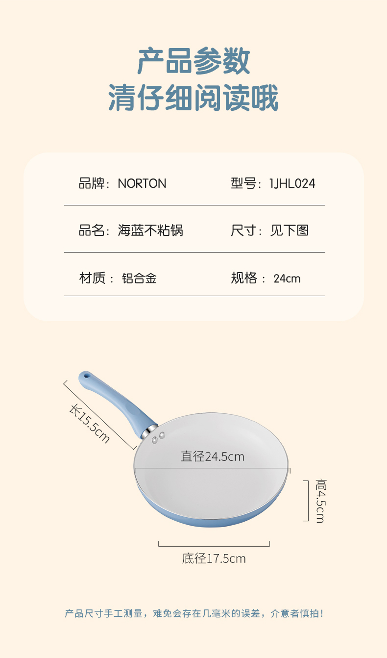NORTON诺顿海蓝不粘煎锅1JHL024铝合金炒菜锅平底煎炒锅两用煎牛排锅 煎炒两用锅24CM