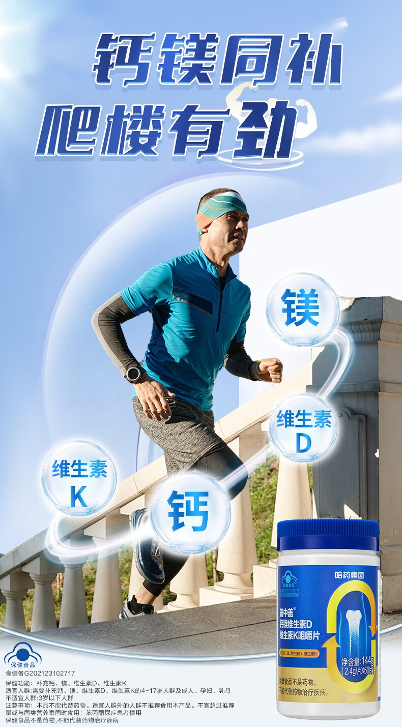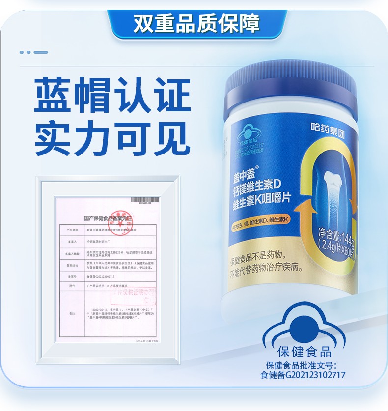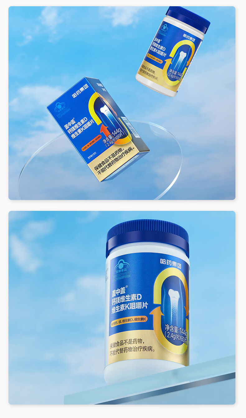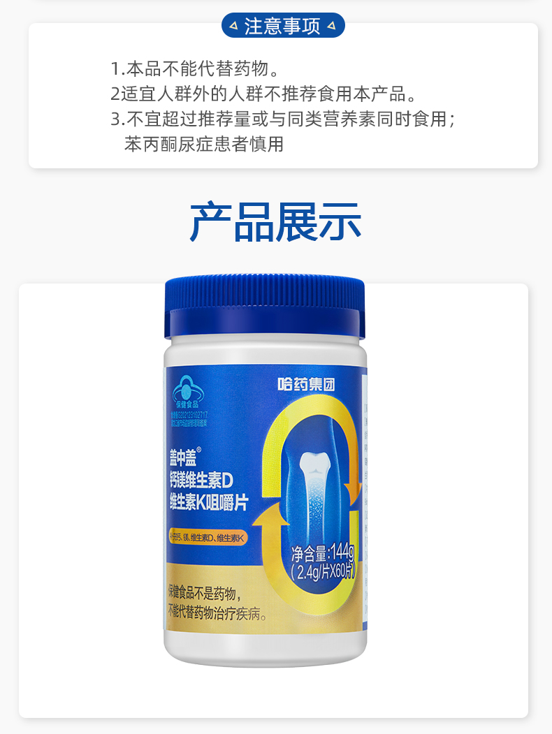 哈药盖中盖鸿洋神牌钙镁维生素D维生素K咀嚼片60粒