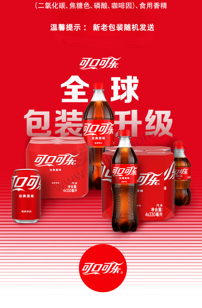 可口可乐 Coca'Cola 碳酸饮料 330ml/罐 24罐/箱 (经典罐、摩登罐 新老包装随机)