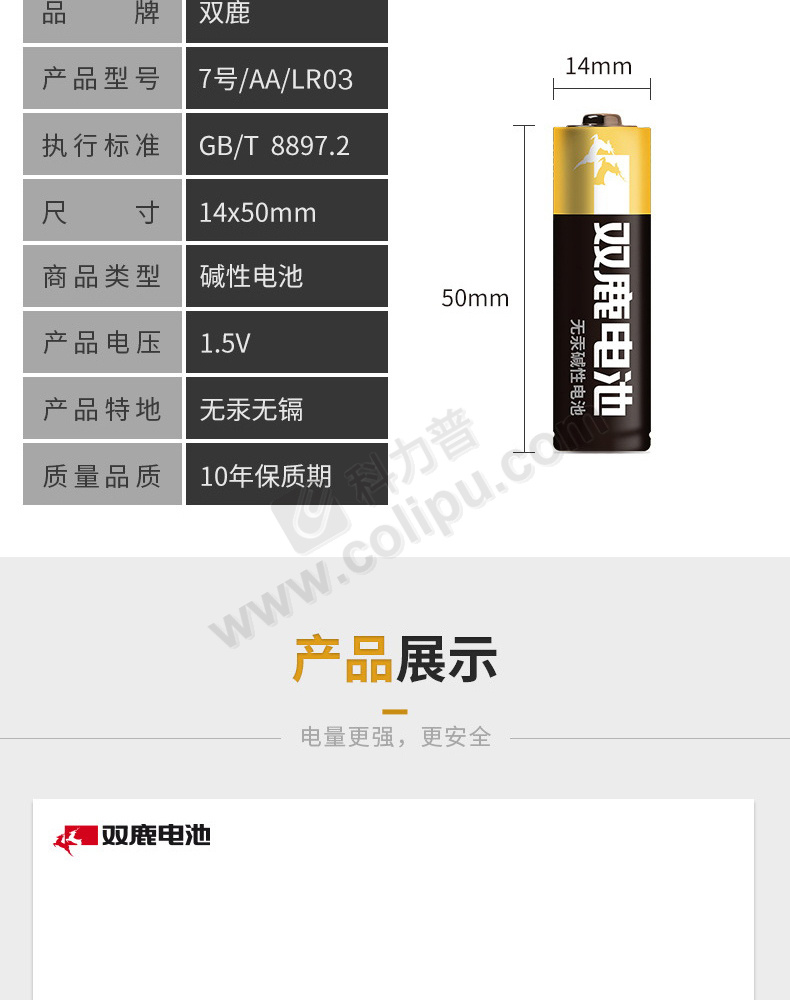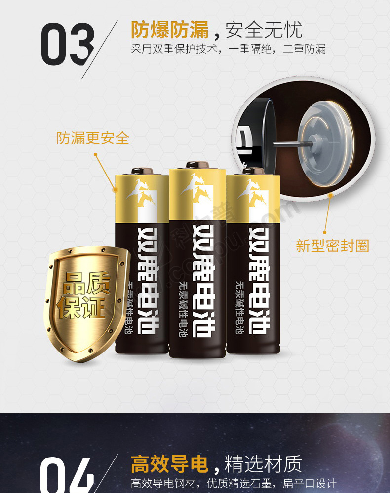 双鹿 7号碱性电池 LR03 1.5V 4节/卡 10卡/盒 10盒/箱