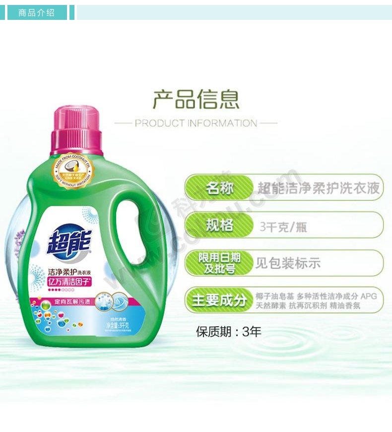 超能 洁净柔护洗衣液 (自然清香/橙花茉莉香氛) 3kg/瓶 4瓶/箱 (新老包装随机发货,新包装橙花茉莉香氛)