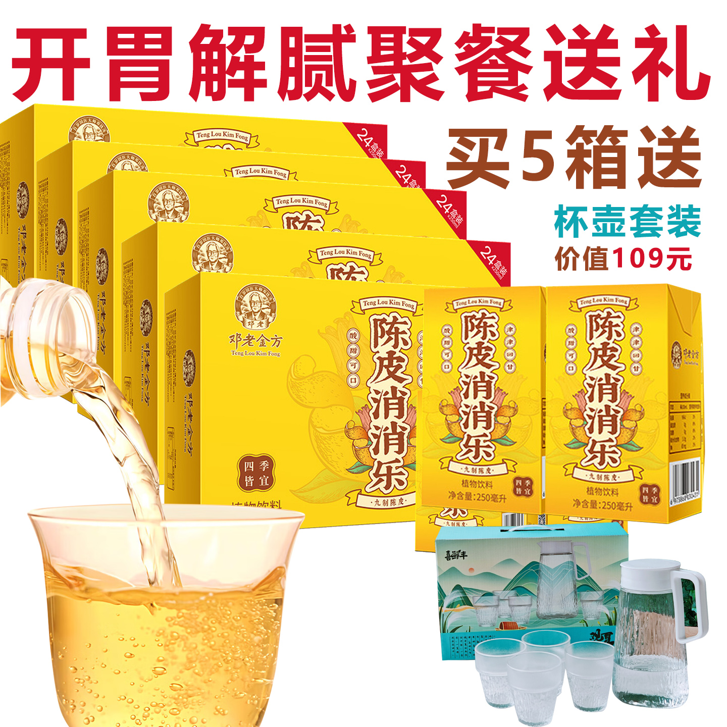 邓老陈皮消消乐利乐包250ml*24盒*5箱送喜鲜丰冰白水具套装一盒