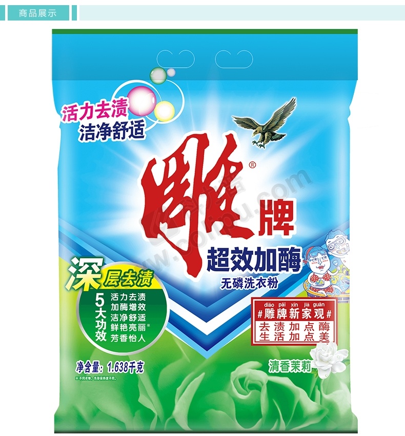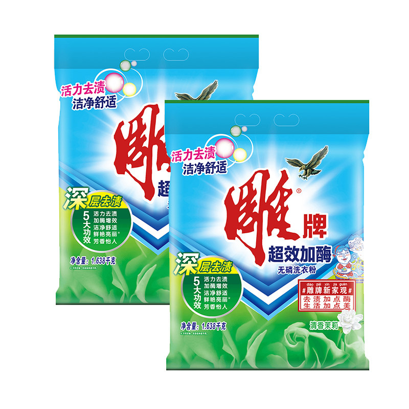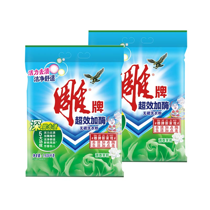 雕牌 超效加酶洗衣粉 (茉莉清香) 1.64kg/袋 6袋/件 (老包装1.638kg/袋,新老包装交替发货)