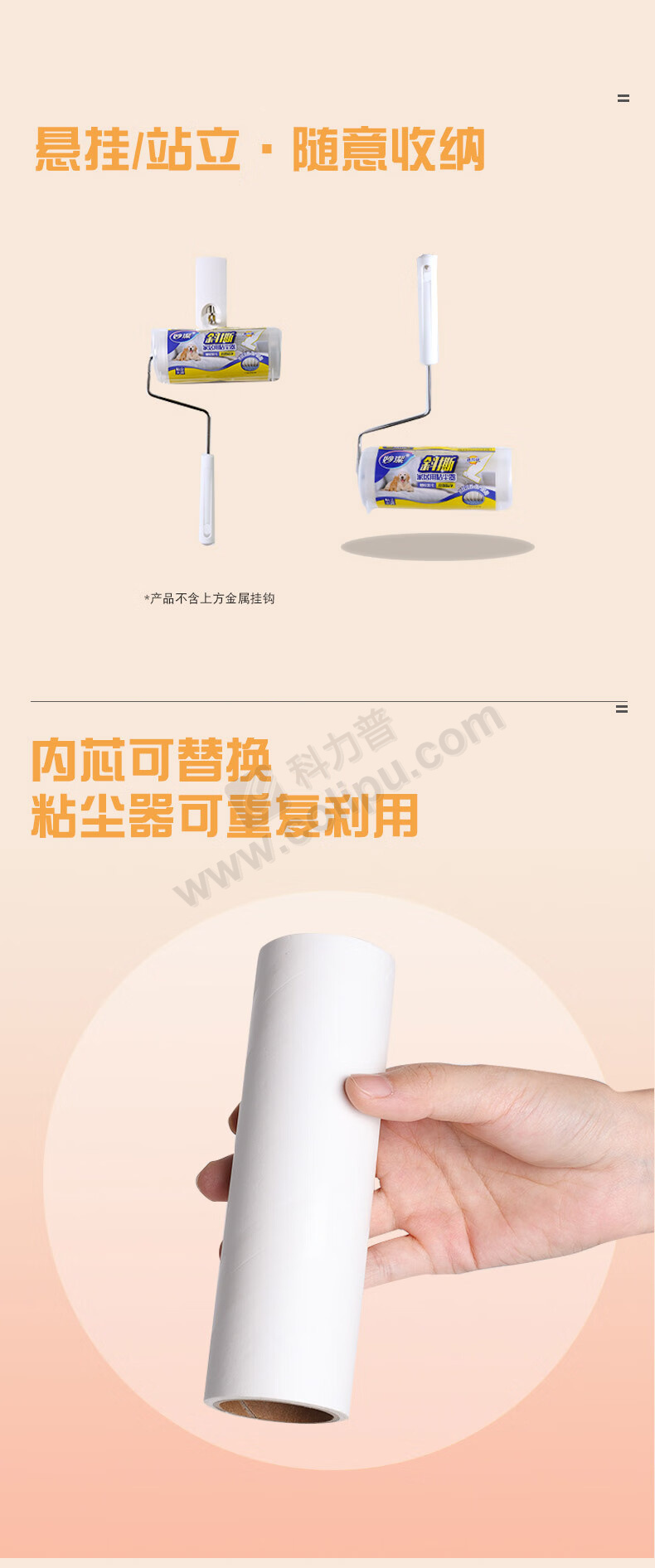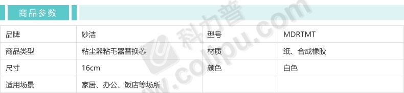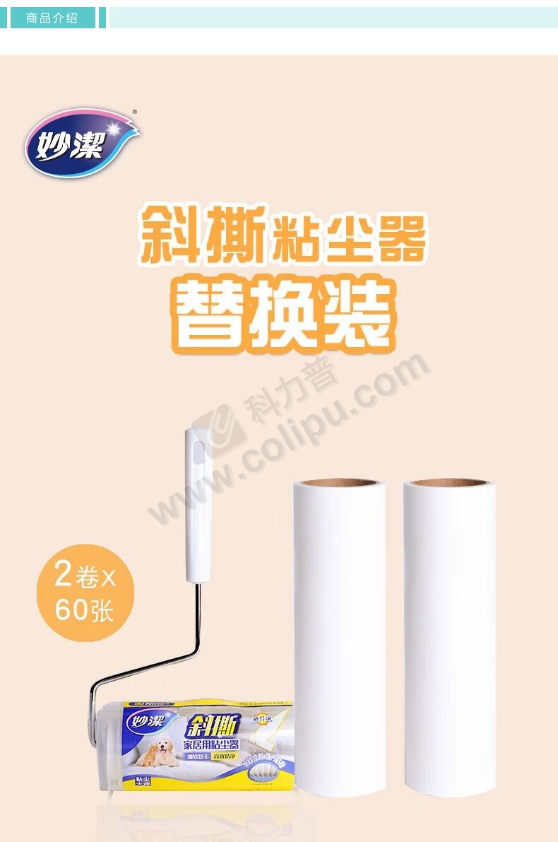 妙洁 MIAOJIE 粘尘器C型 粘毛器替换芯 MDRTMT 16cm*60张 (白色) 2卷/包 24包/箱