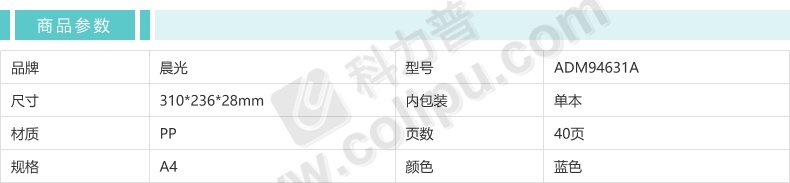 晨光 M&G 资料册 ADM94631A A4 40页 (蓝色)